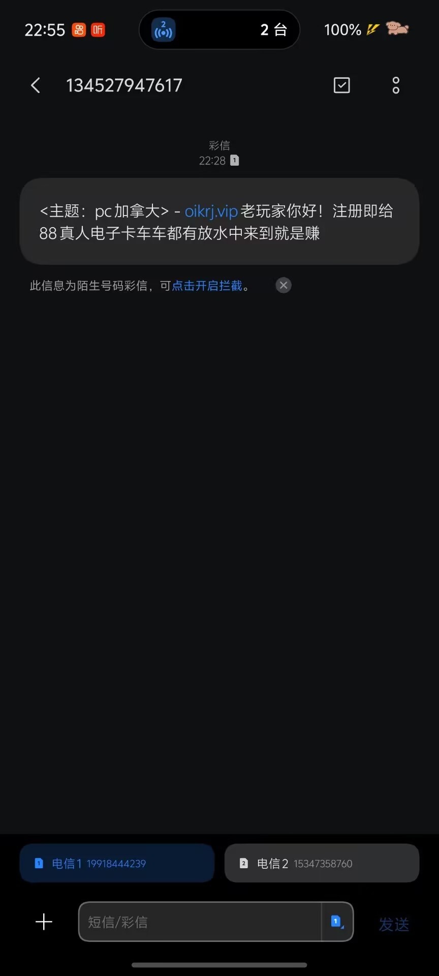 收到短信送88,5水,可以去碰下,自己做短信