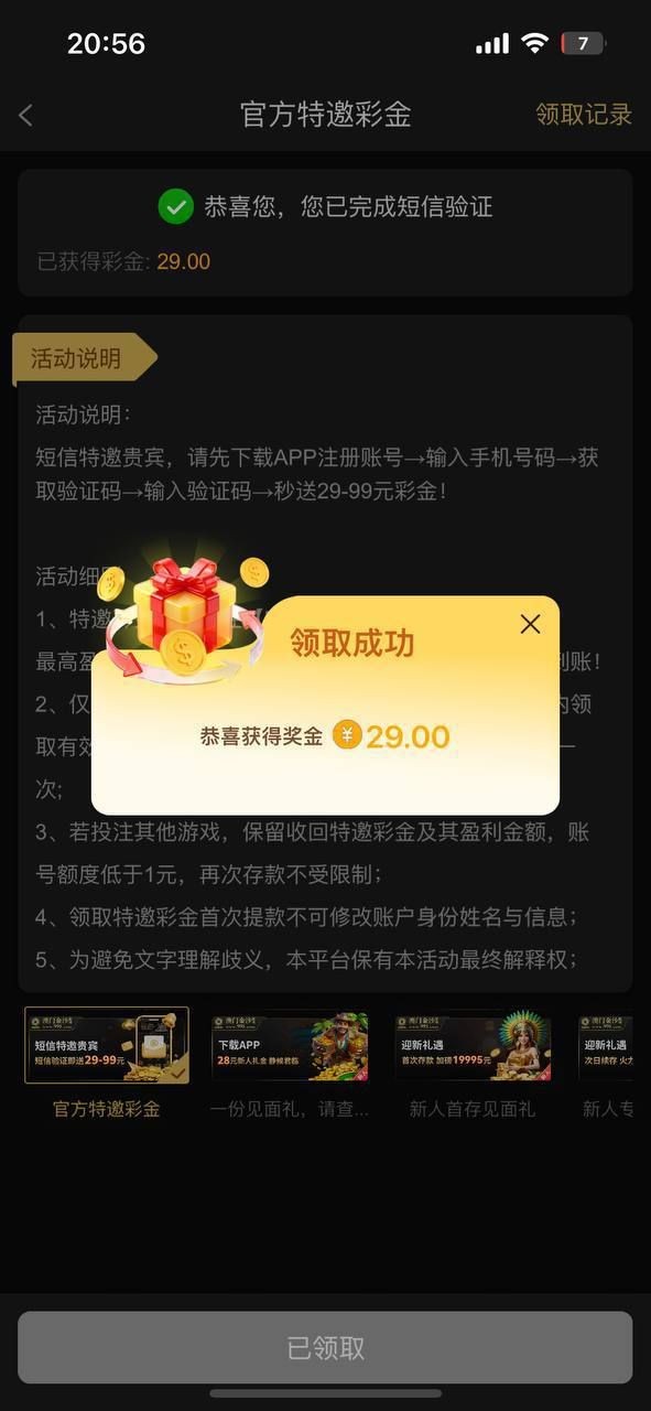 注册活动页面验证手机特邀彩金 ,在特邀就有,没有无视